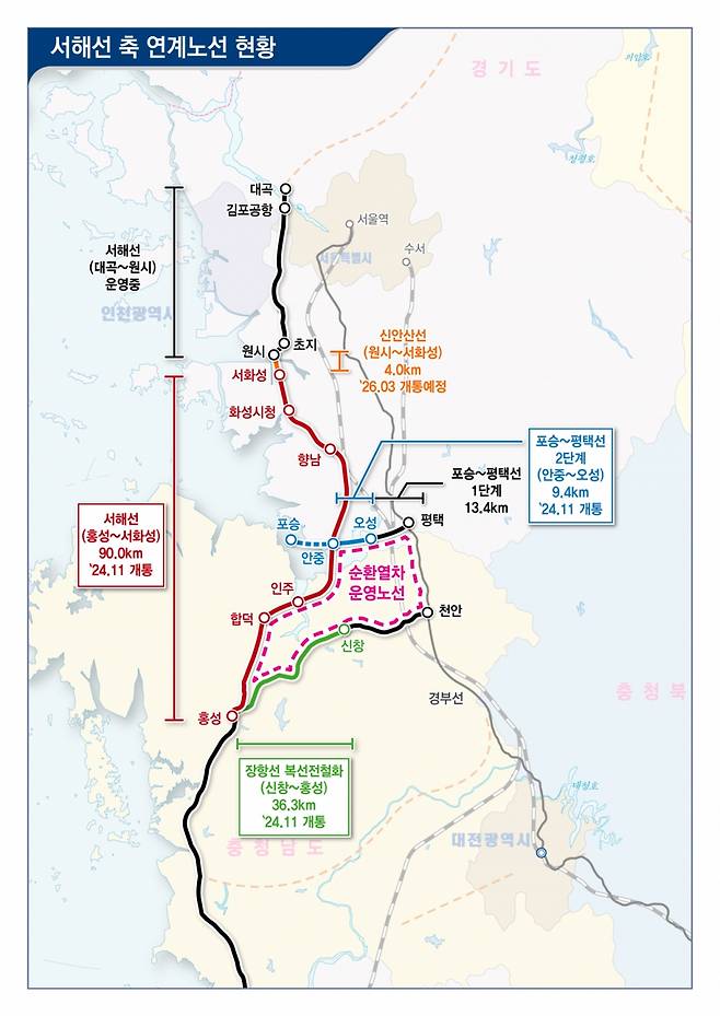 3개 노선의 동시 개통에 따라 서해안 항만과 내륙을 잇는 화물 철도망의 기능까지 높여 서해안 권역의 성장을 촉진할 것으로 기대된다.