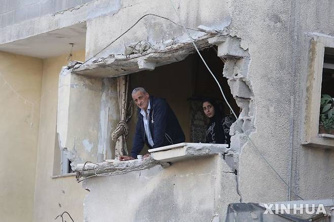 [툴카렘=신화/뉴시스] 지난달 31일(현지시각) 서안지구 툴카렘 누르샴스 난민촌에서 팔레스타인인들이 이스라엘군의 공격으로 파손된 건물 창문에서 밖을 내다보고 있다. 팔레스타인 소식통에 따르면 툴카렘에서 이스라엘군의 폭격과 총격으로 현지 하마스 지도자 포함, 팔레스타인인 3명이 숨진 것으로 알려졌다. 2024.11.01.