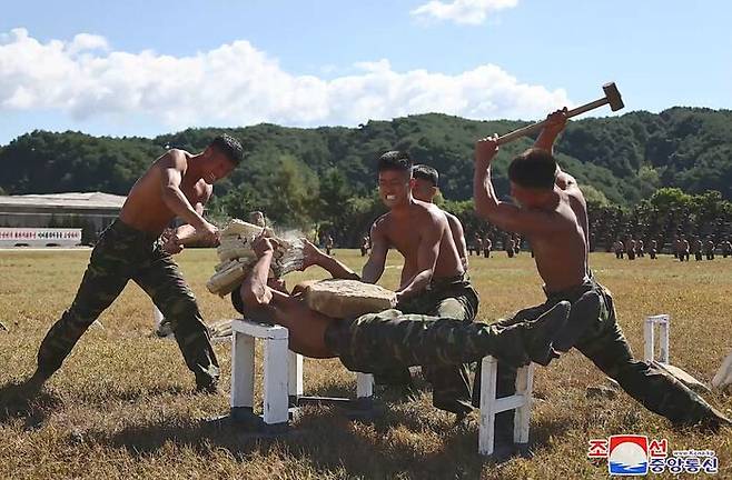 김정은 앞에서 훈련 중인 북한 특수부대원들