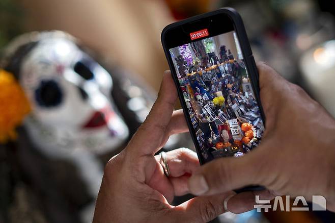 '죽은 자의 날' 제물 사진 찍는 라틴계 사람들