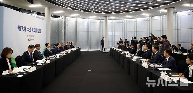 [서울=뉴시스] 홍효식 기자 = 한덕수 국무총리가 1일 서울 서초구 세빛섬에서 제7차 수소경제위원회를 주재하고 있다. 2024.11.01. yesphoto@newsis.com