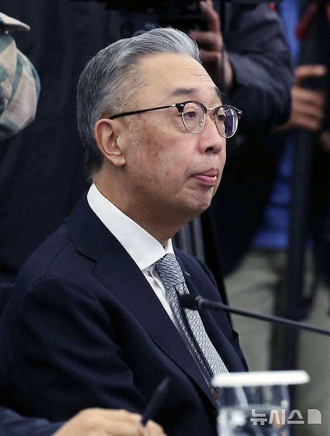 [서울=뉴시스] 홍효식 기자 = 박지원 두산에너빌리티 회장이 1일 서울 서초구 세빛섬에서 열린 제7차 수소경제위원회에 참석해 한덕수 국무총리의 발언을 경청하고 있다. 2024.11.01. yesphoto@newsis.com