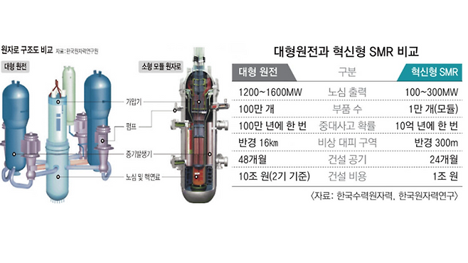 우리나라의 소형 모듈 원자로는 세계 최고 수준의 경수로형 소형 모듈 원자로 확보를 목표로, 노심의 안전성능을 극대화하는 기술, 기존 대형 원전보다 제작 기간이 단축된 혁신제조 기술 개발 등 혁신형 소형 모듈 원자로 개발 및 조기 상용화에 집중하고 있습니다.