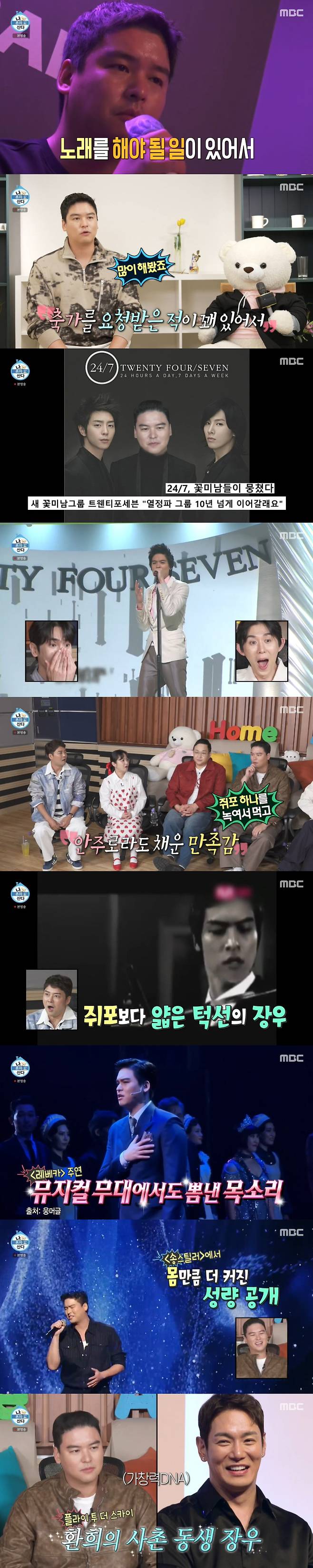 이장우는 "축가 많이 해봤다. 12번 정도 해봤다. 노래하는 걸 좋아한다"며 "2009년도에 노민우, 현우 형과 함께 그룹 '24/7'으로 활동 했었다"며 당시 앨범과 무대에 올랐던 모습이 공개돼 눈길을 끌었다.