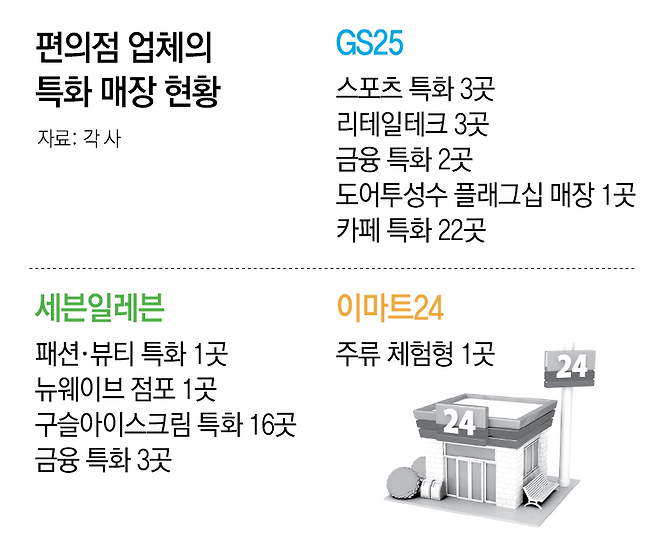 전문가들은 특화 매장이 성장 한계에 다다른 편의점 업계의 새로운 돌파구가 될 수 있다는 해석을 내놓는다. 현행법상 편의점은 인근 매장 100m 내 매장을 출점할 수 없는 제한이 걸려 있다. 출점 경쟁이 힘들어진 상황에서 입지가 좋은 타사 매장을 가져오는 ‘간판갈이’ 경쟁이 치열한 상황이다. 이종우 아주대 경영학과 교수는 “사실상 서울에서는 신규 편의점 출점이 어렵다”며 “(특화 매장은) 소모적인 간판갈이 경쟁에서 벗어날 대안적 모델”이라고 말했다.