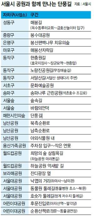 103곳 중 접근성이 좋은 ‘공원과 함께 만나는 단풍길' 24곳을 소개한다(표 참조).
