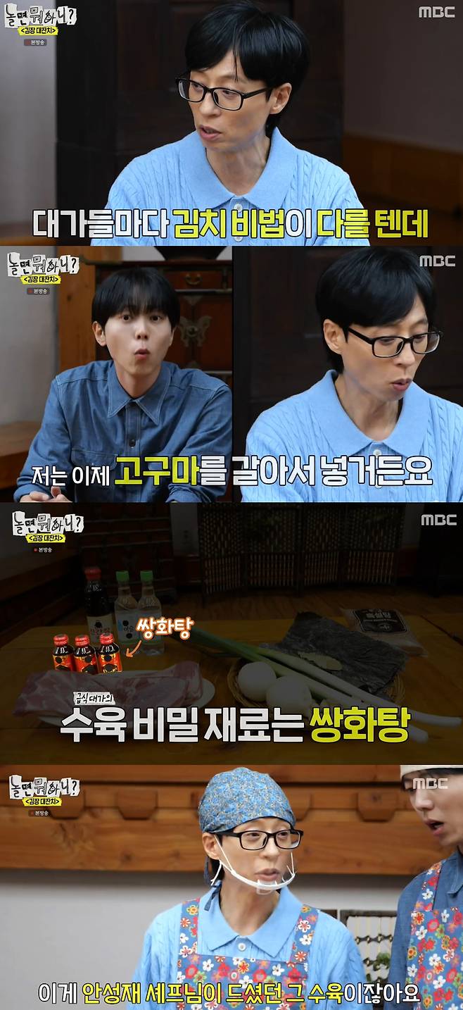 2일 방송된 MBC ‘놀면 뭐하니?’에서는 '흑백요리사'에 출연했던 ‘급식대가’ 이미영, ‘한식대가’ 김미라, 박경례가 출격해 멤버들과 함께 김장을 담그는 모습이 그려졌다.