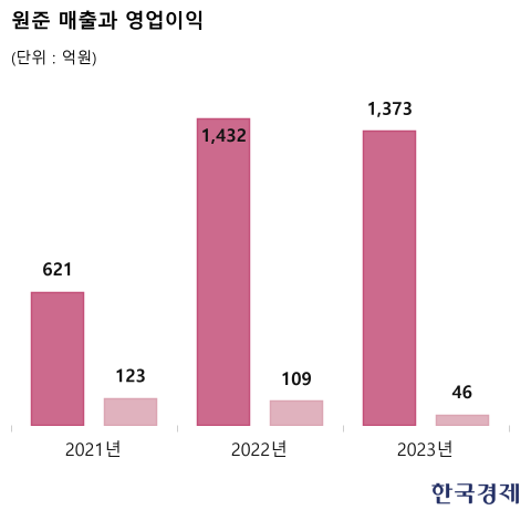 2021년 10월 7일 코스닥 상장한 원준(시가총액 2086억원·코스닥 332위)의 데뷔는 화려했다. 당시 일반투자자 공모주 청약에서 1623 대 1의 경쟁률을 보였고 증거금으로만 13조2525억원이 몰렸었다. 기관 수요예측 경쟁률은 1464 대 1로 희망범위를 뛰어넘어 6만5000원에 공모가 확정했다. 현재 주가는 2022년 7월 실시한 1 대 2 무상증자가 반영된 가격이다. 같은 달 무상증자 효과로 상장 후 최고가인 5만1600원을 찍었지만 2년4개월 만에 ‘3분의 1토막’(73.53% 손실) 신세다. 당시 고점에서 1억원을 투자했다면 평가금액이 현재 2650만원 정도인 것이다. 2차전지 장비사의 특성상 고객 발주 계획에 따라 사업 부침이 있는 게 약점으로 꼽힌다.