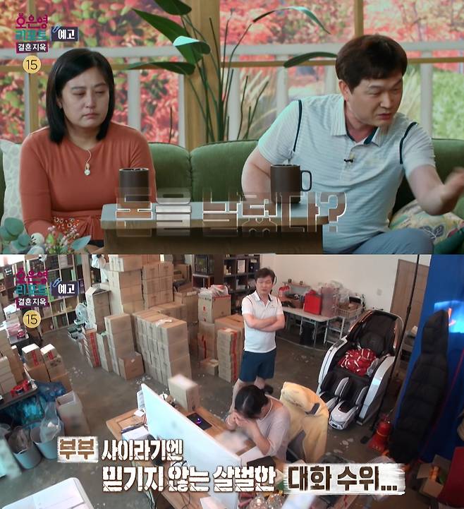 오전 10시, 아내가 쉼 없이 걸어 도착한 곳은 운영 중인 온라인 쇼핑몰 사무실. 아내는 15년 동안 화장품을 판매하고 있다. 더불어, 사업에 관한 온라인 강의를 진행하거나 전자책도 출간하는 소위 말해 'N잡러'라는데. 출근과 동시에 매의 눈으로 송장을 확인하며 택배 작업에 열중하는 아내. 현재 평일 평균 150박스 포장, 월 매출 3~4천이라는 말에 MC들은 부부의 금전 문제에 대한 의문을 품는다. 이에 아내는 코로나19가 확산된 후, 매출이 급감하면서 빚이 늘어나 현재는 월 매출 1억 원 이상이어야 이자와 생활비를 감당할 수 있다고 털어놓는다. 그러나, 남편은 현재 벌어들이는 수입마저도 아내와 함께 일하는 사업자이자, 파트너들의 몫이 크다며 답답함을 토로한다. 최선을 다하고 있는 건 알지만, 가계가 힘든 상황에도 파트너 사업자들을 지나치게 배려하고, 심지어 그들에게 도움까지 주려는 아내를 보면 남편은 분노를 참기 힘들다는데. "사장이라면 맺고 끊는 게 있어야 한다, 아내의 사업 방식이 마음에 들지 않는다"며 솔직한 심정을 드러낸다. 심지어, 컴퓨터 앞에 앉아 업무를 하는 아내 옆에서 팔짱을 끼고 "씨X 환장하겠네, 그만 울어, 인간아" 등 막말하는 모습을 보이는 남편. 오은영 박사의 얼굴이 점점 굳어진다. 촬영 스태프 앞에서 애써 참아왔던 눈물을 터트린 아내는 괜찮다고 반복하면서도, 가끔 남편이 심하게 시비를 걸 때면 무섭다고 속마음을 털어놓는다.