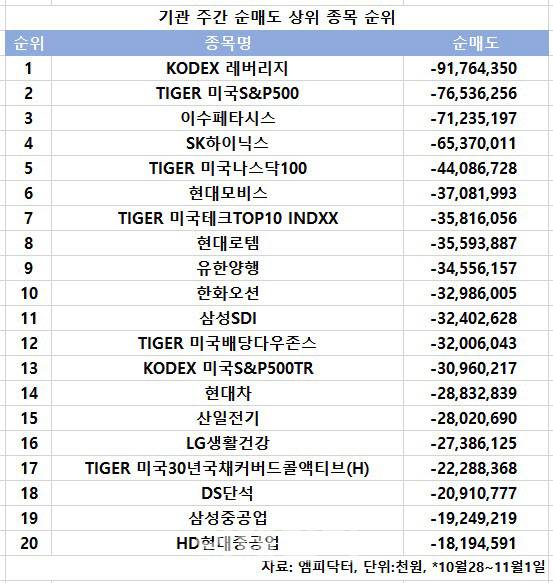 코스피 주간 기관 순매도 1위 'KODEX 레버리지'