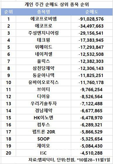 코스닥 주간 개인 순매도 1위 '에코프로비엠'