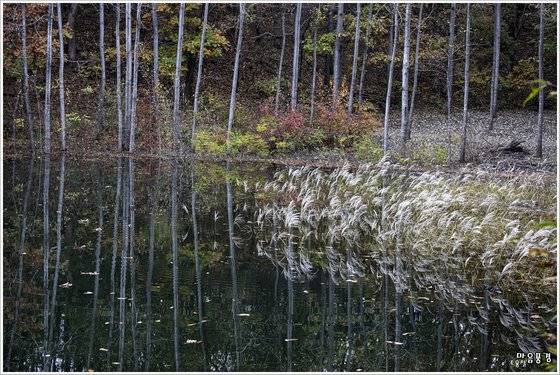 「 강원도 횡성군 횡성호수 둘레길 5구간. 낮은 위치일수록 더 많은 반영을 담을 수 있다. 렌즈 70~200mm, iso 400, f5, 1/125초.