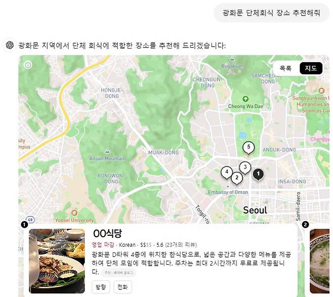 “광화문 회식장소 추천해줘” 챗GPT 서치에 물었더니… 지도에 ‘식당 위치-특징’ 담아 보여줘