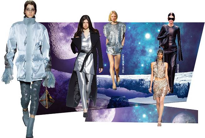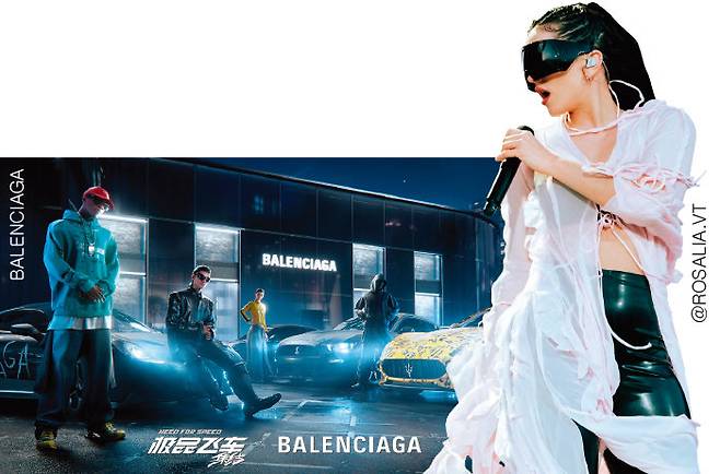 패션계에서 Y3K 패션은 예술과 테크의 경계를 허무는 하나의 장르로 인식된다. 발렌시아가는 Y3K 스타일의 디지털 미학을 고급 패션에 반영한 대표적인 예. 이번 2024 F/W 컬렉션에서는 사이버 펑크의 미래와 디스토피아적 혁신을 담은 피스들로 무대를 꽉 채웠다. 색색의 반투명 마스크 선글라스를 착용한 모델들 뒤로 도시와 해변, 설산까지 AI가 만들어낸 장엄한 디지털 풍경이 펼쳐지며 강렬한 인상을 남겼다. 최근에는 모바일 자동차경주 게임 '니드 포 스피드’와의 이색 협업 소식을 전해왔다. 게임 속 모델들이 착용한 의류 제품들은 내장된 NFC 칩을 통해 게임 내 콘텐츠를 소비할 수 있도록 해 즐거움을 더했다. 겐조와 스텔라맥카트니 역시 딱 달라붙는 실버 메탈 보디슈트를 내세우며 미래적인 분위기를 연출했다.