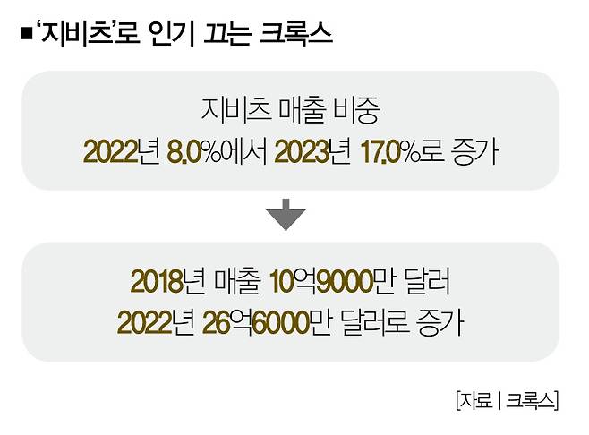 소비자들 사이에선 "지비츠 때문에 크록스를 산다"는 말이 나올 정도로 지비츠는 크록스 구매에 커다란 영향을 미치고 있다. 크록스에 따르면 지비츠의 매출 비중은 2022년 8.0%에서 2023년 17.0%로 커졌다.