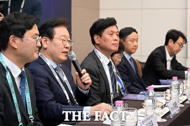 이후 열린 AI 기업간담회에서 참석한 이 대표는 챗GPT 개발사 오픈 AI 임원을 만나 "제가 요새 챗GPT에 푹 빠져있는데 사용할 기회를 주셔서 고맙다"며 "오늘은 현장의 얘기를 많이 들어보고 싶다. AI 산업의 진흥을 통해서 대한민국 경제도 대한민국 국민들의 삶도 더 개선되길 바란다"고 운을 뗐다.