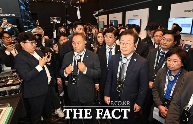 [더팩트ㅣ이새롬 기자] 이재명 더불어민주당 대표(오른쪽)와 최태원 SK그룹 회장이 4일 서울 강남구 삼성동 코엑스에서 열린 'SK AI 서밋 2024(SK AI Summit 2024)'에 참석해 차담회를 갖고 있다.