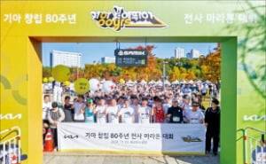 기아가 지난 2일 경기 수원시 광교호수공원에서 창립 80주년을 기념해 마라톤 대회 '기아 같이 뛰어'(사진)를 개최했다.