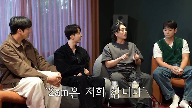 “god도 그렇고 계속 모여서 공연하는 게 정말 좋아 보인다. 내가 아이돌들에게 하는 말이 그거다. 팀을 절대로 지키라는 것”이라는 성시경의 말엔 “우린 회사와 계약할 때부터 항목에 넣었다. 각자 회사가 달라도 2AM을 계속 할 거라고”라고 덧붙이며 팀을 향한 남다른 애정을 전했다.