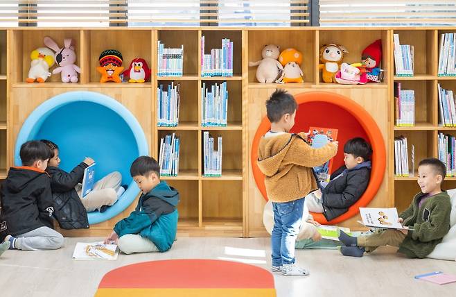 이날 개관식에 앞서 인근 어린이집 아동 50여 명이 도서관을 먼저 둘러봤다. 친환경 자재와 고급 목재로 단장한 도서관을 둘러보던 아이들은 “와! 책 많다” “진짜 넓다”고 환호하며 동화책을 집어 들었다. 성인들을 위한 강의실과 학습공간도 별도로 마련됐다.