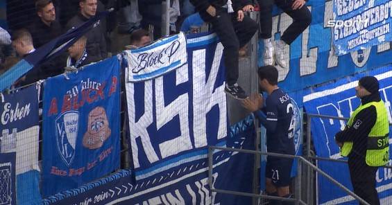 그리고 영상을 함께 공개했는데 전반 종료 휘슬이 울리자마자 한 보훔 선수가 보훔 원정 팬들이 있는 관중석으로 달려갔다.