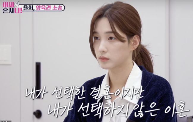 이에 율희는 “전 남편이 (이혼 당시) 먼저 합의이혼 제안해서, 알았다고 했다”며 “소송이 무서웠다 어려운 싸움이란 인식이 강했다”며 “그 집에서 (모든 것에서) 너무 벗어나고 싶었다”고 심경을 전했다. 율희는 “(이혼이) 급하게 진행됐다, 이혼 애기에 (전 남편이) 3일 만에 ‘법원가자’고 해서 서류 써서 내자고 했다”며 “주변에 자문 구할 지인도 없어 무서웠다”고 했다.
