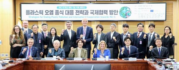 세미나는 오는 25일 부산에서 개최되는 플라스틱 국제협약 성안을 위한 마지막 회의(INC-5·아래 5차 회의)를 앞두고 열렸습니다. 국회기후변화포럼(아래 포럼)과 주한유럽연합(EU)대표부가 공동 주최했습니다.