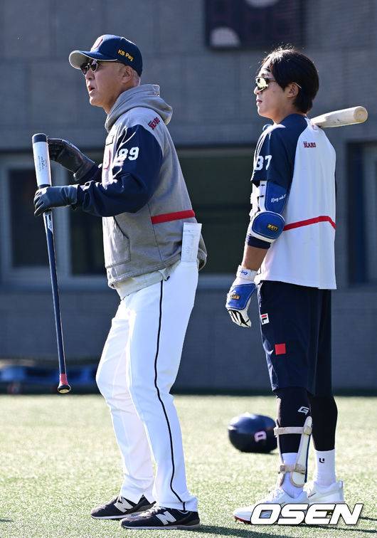 두산 고토 수석코치가 김대한에게 조언을 전하고 있다. 2024.11.06 / ksl0919@osen.co.kr
