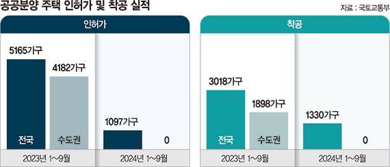공급이 계속 줄어드는 가운데 올해 들어 9개월간 수도권 공공분양 주택의 인허가 및 착공 실적이 모두 '0가구'를 기록한 것이다.