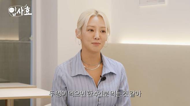그러자 지성은 "삼겹살 몇인 분 먹냐"라고 물었고, 효연이 "두 명이서 먹으면 4인분 먹는 것 같다"라고 하자 먼 산을 바라봐 웃음을 자아냈다.