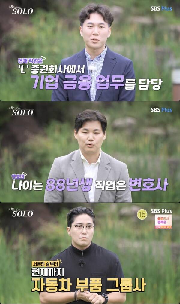 '나는 솔로' 23기 솔로남 나이・직업 공개…영호 "1988년생 변호사"
