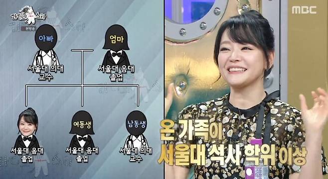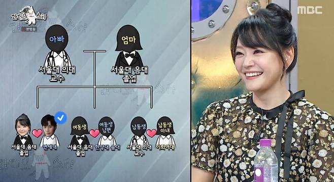 “남매의 배우자들도 다 서울대 출신인가?”라는 질문엔 “우리 남편은 연세대고 여동생의 남편은 한양대, 남동생의 아내는 이화여대 출신”이라고 답했다.