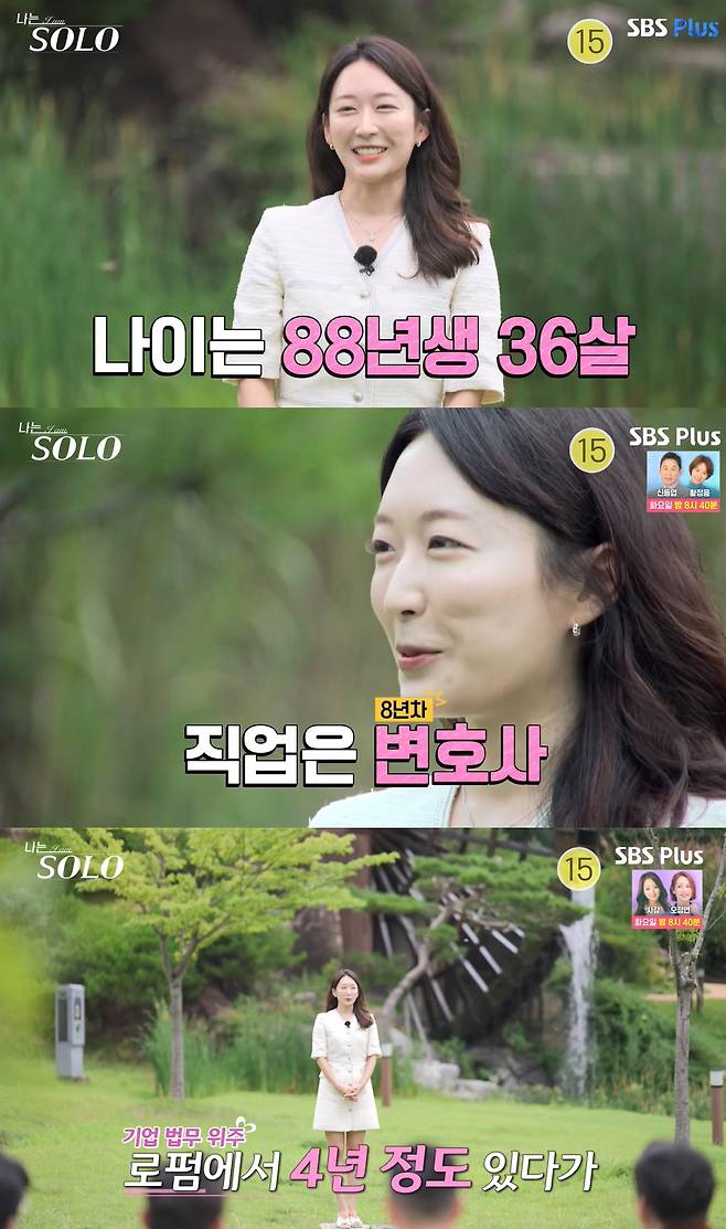 이어 여자들의 자기소개가 시작됐다. 영숙은 "88년생 8년차 변호사"라고 나이와 직업을 소개했다.