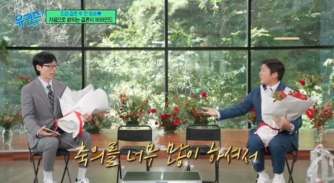 조세호는 "많은 분들이 '유재석 때문에 결혼한 줄 알아라' 했다. 맞는 이야기다. 감사함이 있다. 진심으로"라며 유재석에 고마움을 표현했다.