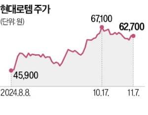 현대로템은 7일 유가증권시장에서 0.32% 내린 6만2700원에 거래를 마쳤다. 이날 소폭 하락했지만 올해 방위산업주 랠리에 힘입어 135.7% 뛰었다. 시가총액은 연초 2조9200억원에서 6조8430억원으로 불어났다.
