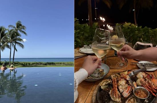 공개된 사진에는 로맨틱한 분위기 속 잔을 부딪히는 이들 부부의 손부터 아름다운 자연 경관을 즐기며 바다에서 물놀이하는 모습 등이 담겨 있다.