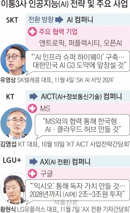 유무선 시장이 포화에 이르며 AI 기업으로 변모하는 이동통신 3사(SK텔레콤·KT·LGU+) 간 경쟁도 더욱 치열해질 전망이다.