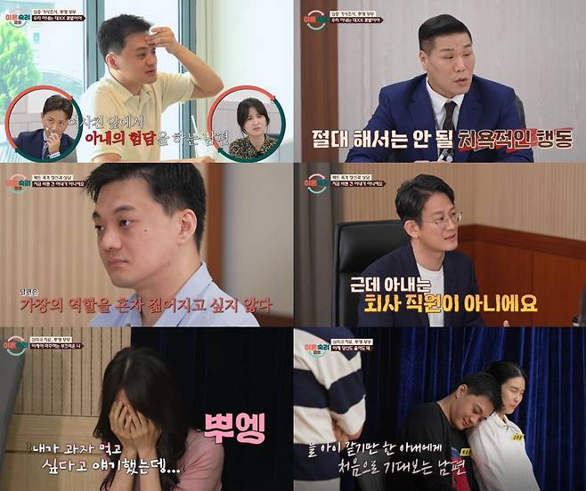 하지만 갈등 상황을 버티지 못하는 아내는 아기 같은 말투로 남편과 대화할 뿐만 아니라 뜬금없이 웃다가 갑자기 '뿌엥'하고 울어버려 이를 지켜본 MC들도 모두 황당함을 표했다.