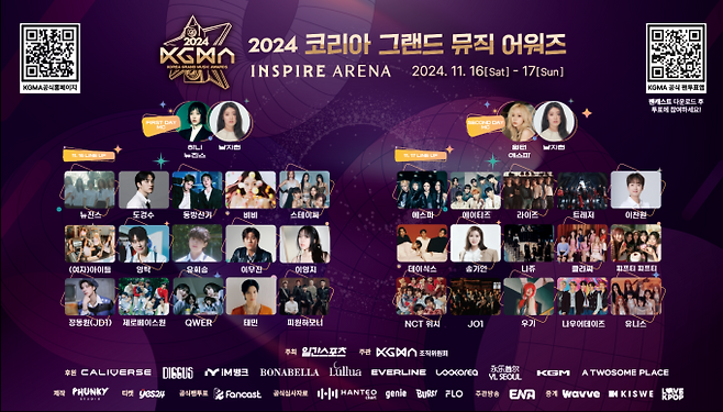 ‘2024 KGMA’는 골든디스크 시상식을 잇는 대한민국 대중음악계에 새로운 패러다임을 제시하기 위해 한 해 동안 국내외 팬들에게 큰 사랑을 받은 K-POP의 다양한 부문을 선정해 시상하는 무대로 16일과 17일 양일간 진행된다.