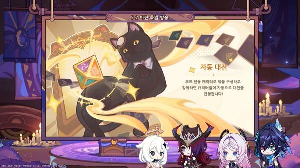 대부분 원소 반응에 강력한 지원이 제공된다. 전략을 세울 때 1장의 카드를 선택하면 강력한 원소 반응을 얻는다. 자동 대전은 전반적으로 가볍고 캐주얼한 게임성을 자랑한다. 일반 모드인 일곱 성인의 소환도 업데이트가 적용된다.