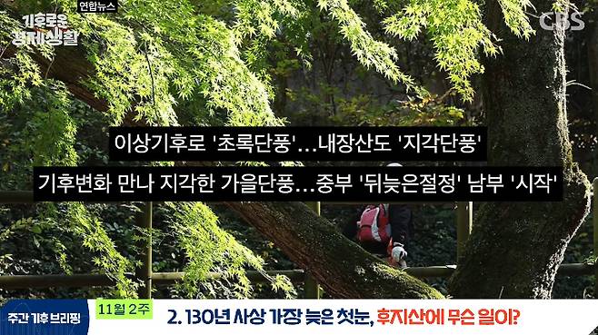 ◆ 홍종호> 참 들을수록 큰일이라는 생각이 들고요. 남의 일이 아닌 게 우리나라 단풍도 늦어지고 이러다가 조금 지나면 가을 없어지는 거 아니에요?