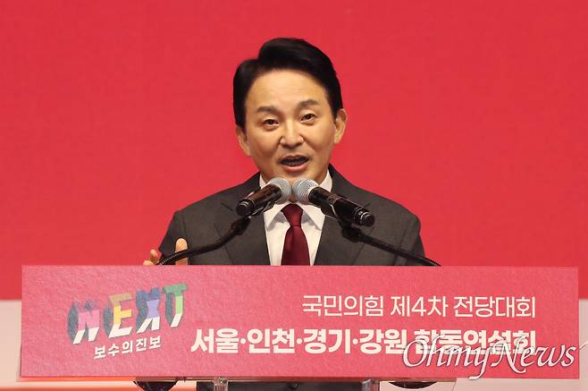 | ▲ 원희룡 국민의힘 당 대표 후보가 지난 7월 17일 오후 경기 고양 소노 아레나에서 열린 제4차 전당대회 서울·인천·경기·강원 합동연설회에서 정견 발표를 하고 있다.(자료사진) |