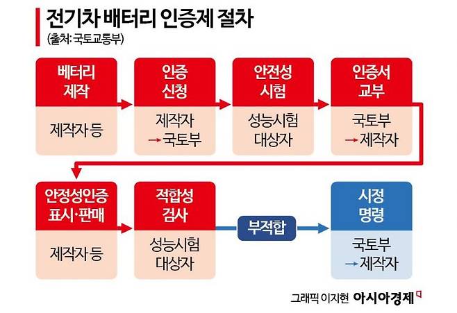정부가 배터리의 안전성을 확인하면 제작사는 배터리에 국토부 인증 표시를 해야 한다.