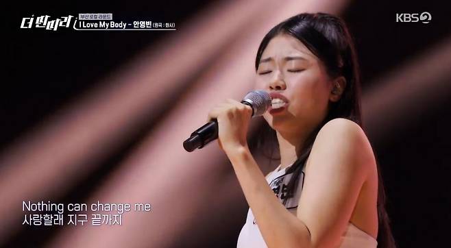 안영빈이 준비한 첫 번째 무대는 화사의 'I love My Body'. 안영빈은 "몸보다 더 포괄적인 의미로 약간 내 결핍이나 마주하기 싫은 것들을 안아주고 바라봐줄 수 있는 건 나밖에 없지 않느냐"며 "있는 힘껏 나를 사랑하자라는 나만의 스타일로 한 번 재해석해봤다"고 설명했다.