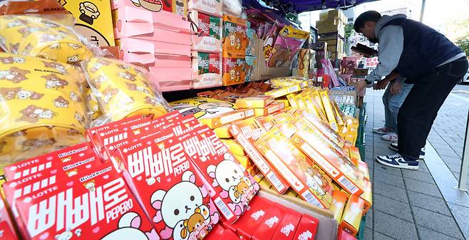 10일 서울 강남구의 한 편의점에서 빼빼로데이(11월 11일)를 앞두고 직원들이 다양한 빼빼로 과자를 진열하고 있다. 빼빼로데이 시즌은 연간 초콜릿 막대형 과자가 가장 많이 판매되는 유통가의 대표적인 가을철 대목이다.