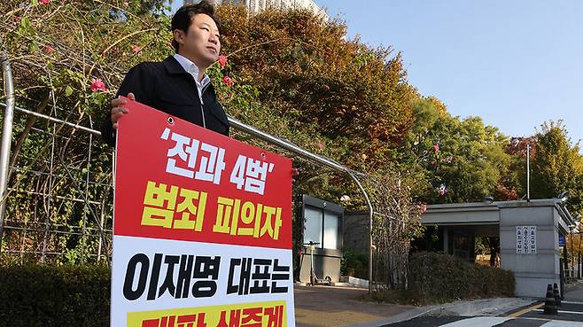 진종오 국민의힘 최고위원은 오늘(11일)부터 더불어민주당 이재명 대표의 1심 선고 생중계를 요구하며 법원 앞에서 1인 시위에 돌입했습니다.