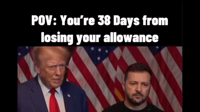 젤렌스키 대통령 얼굴 앞에 지폐가 떨어지는 이미지와 함께 “당신은 용돈을 잃기까지 38일 남았다”는 내용이 담겼는데요.