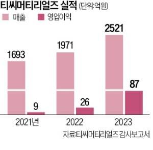 티씨머티리얼즈 실적은 지난해부터 변압기 수요가 확대되며 좋아졌다. 지난해 매출 2521억원, 영업이익 87억원을 올렸다. 2021년 대비 매출은 49%, 영업이익은 825% 증가했다. 바이오스마트 연결 매출(4562억원)의 절반 이상을 차지하는 알짜 자회사로 자리 잡았다.