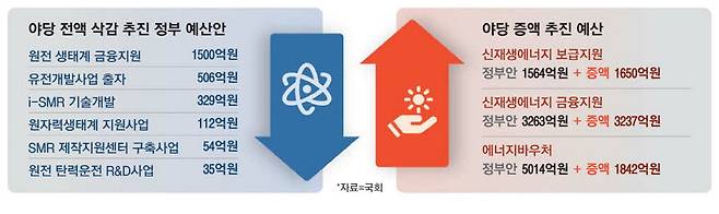 이처럼 정부의 원전·자원 개발 예산을 전격 삭감하겠다고 한 야당은 신재생에너지 사업 예산은 대폭 증액해야 한다고 강조했다. 야당은 신재생에너지 보급지원 사업 예산을 1650억원 늘려야 한다고 제안했다.