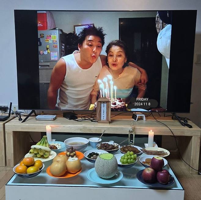 지난 9일 윤정수는 본인의 SNS를 통해 "이건 이 새벽에 안 올릴 수가 없네요. 오늘 엄마 제사 올리고 살짝 잠이 들었는데, 왜 엄마하고 수미샘이 같이 얘기하고 계신 거지? 엄마가 선배라서 챙기는 건가? 좋아하는 사람이 둘이나 나오니 그저 너무 신이 나서 잠결에 올려요. 다들 편안하시겠죠. 그러니 꿈에 나왔겠지? 새벽 4시에 간다고 하던데 3시 58분에 날 깨웠어."라는 글과 함께 어머니의 제사 사진, 생전 김수미와 함께 찍었던 사진을 게재했다.